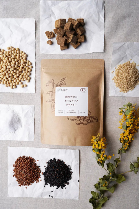 Soplyは、大豆を脱脂せず、まるごと粉砕する独自製法。